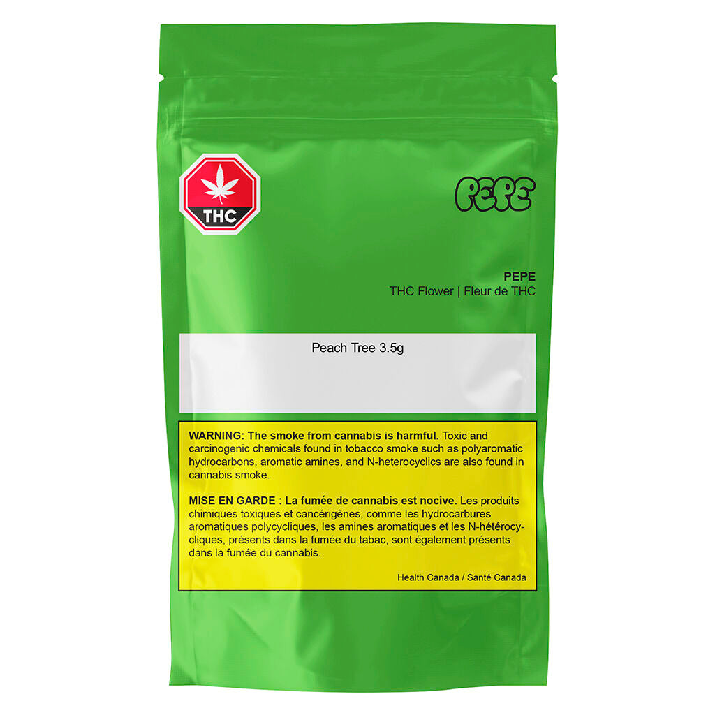 Pepe’s Peach Tree is flavourful with great bag appeal. This sativa leaning flower is born out of a double Peach Ozz cross. Expect aromas evocative of sweet peaches, hints of gas and lime with a smoke that’s very smooth and flavourful. As with all Pepe products, Peach Tree only has our best handpicked buds.