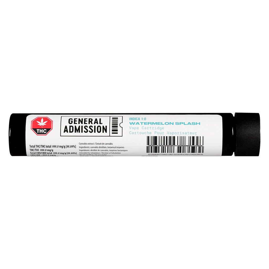 Made for the masses, General Admission vapes are all about flavour. General Admission uses the power of taste to encourage moments of discovery for everyone. We create quality THC distillate infused with botanical terpenes that complement the natural aromas of our strain selection. Watermelon Splash will make you question if you’ve ever truly tasted watermelon. Sweet, fragrant and smells like you’ve carved a whole patch of watermelons.